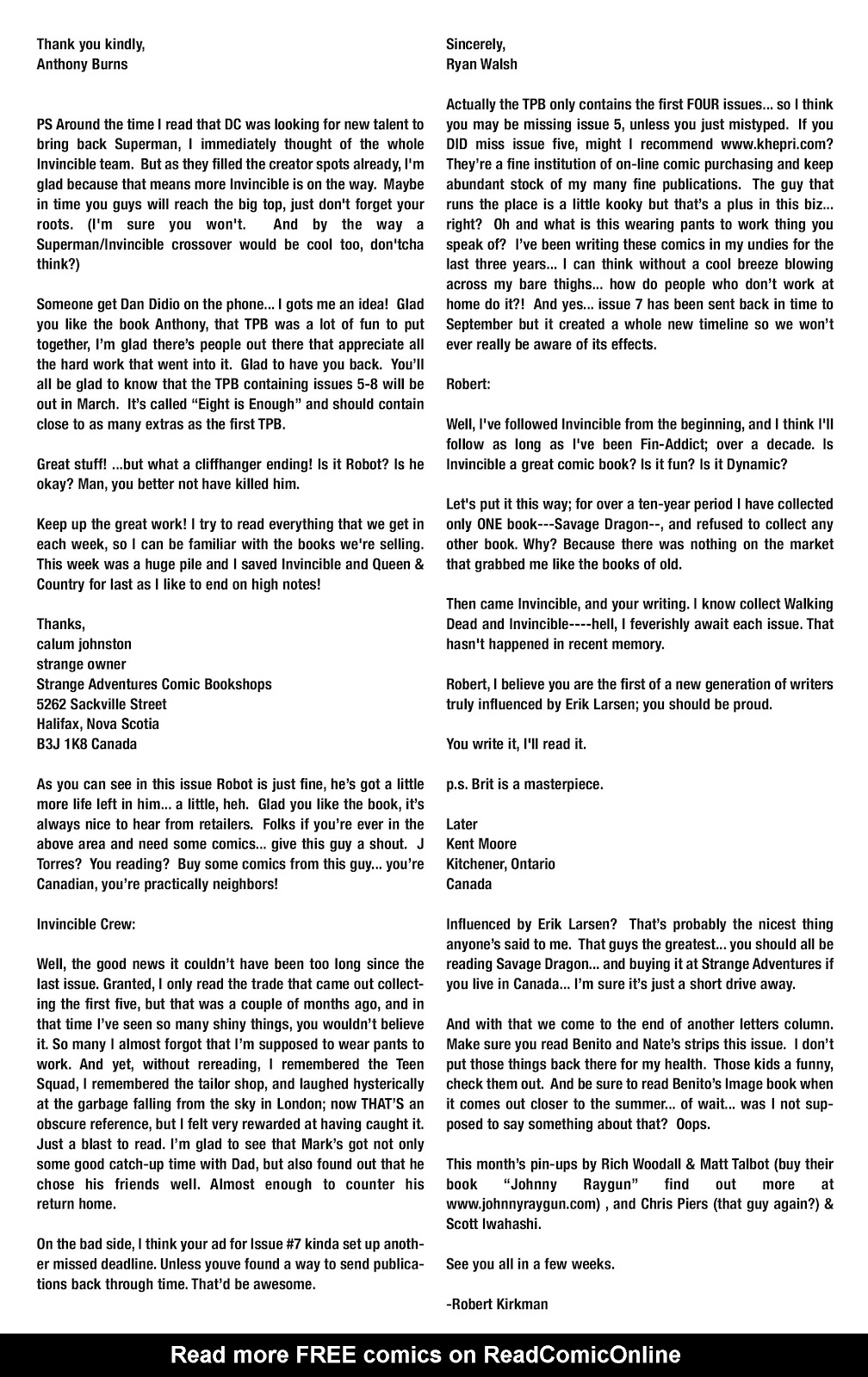 26 - Invincible composed by Robert Kirkman of the Action Adventure Fantasy Sci-Fi Superhero genres. Web You are now reading Invincible 2003 26 online. If you are bored from Invincible 2003 comic you can try surprise me link at top of page or select another comic like Invincible.
